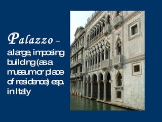BUILDING Flashcards | Quizlet A large, imposing public building or private residence. Slab. A rectangular building having little width with respect to its length and height. Piloti. Any of a series of columns supporting a building above an open ground level. Ell. A wing at right angles to the length of a building. Wing.
