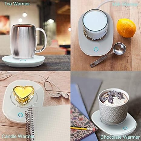 Calentador de taza de café con apagado automático, mantiene la temperatura en hasta 55 °C, viene con una tapa de silicona para taza de uso seguro para ...