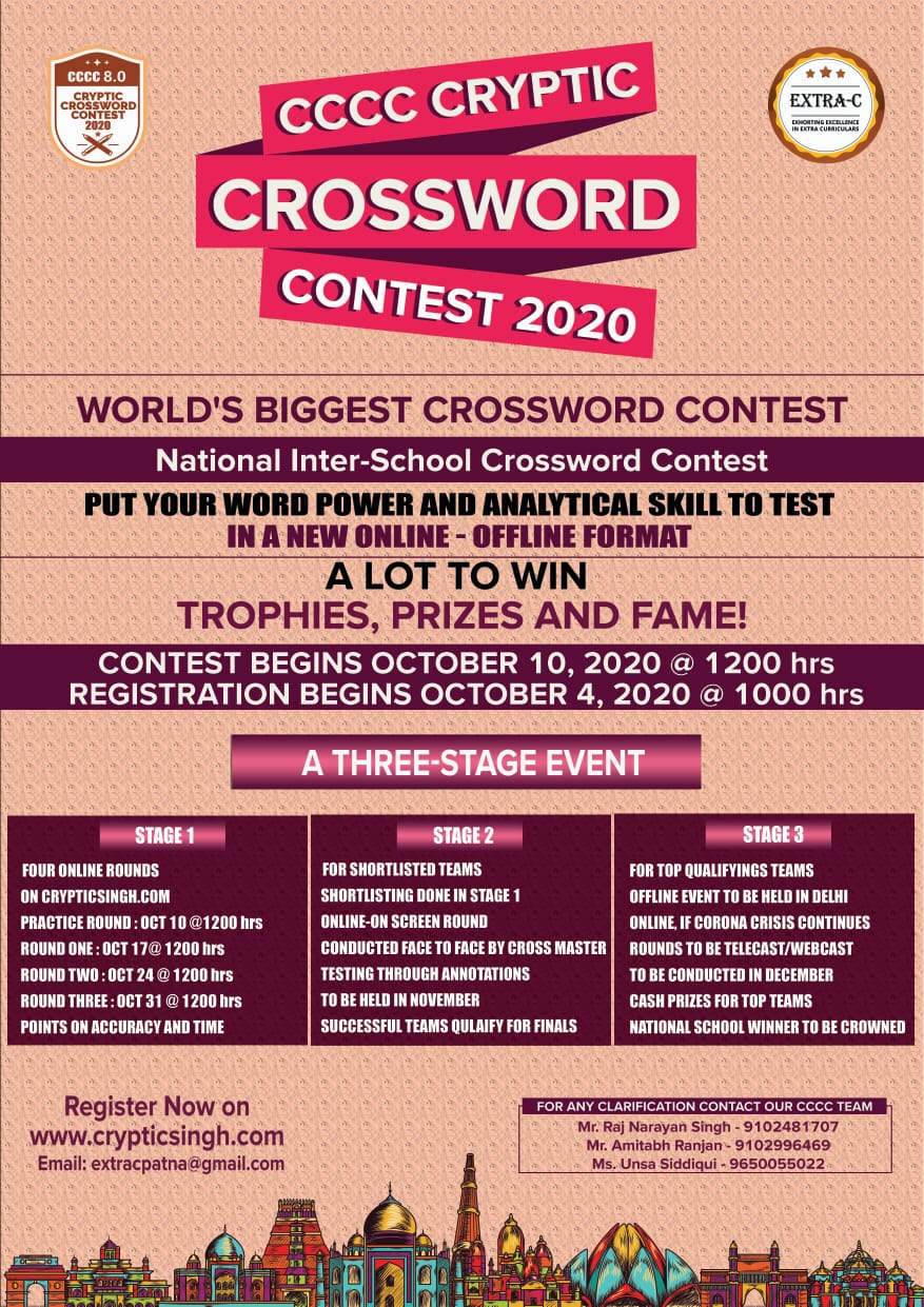 Cryptic Singh Indian Crossword League Cryptic Crossword Contest - (CCCC 10.0) CCCC is an annual, inter-school, national-level crossword solving contest which Extra-C has been organising since 2013. The contest is open to students of Class IX-XII studying in schools affiliated to any of the recognised boards in the country.